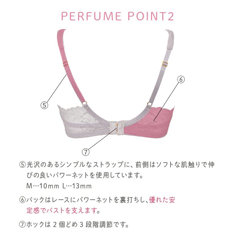 - アンダーからストラップまで繋がるパワーネットのリフトパネルがバストを立体的に寄せ上げます。