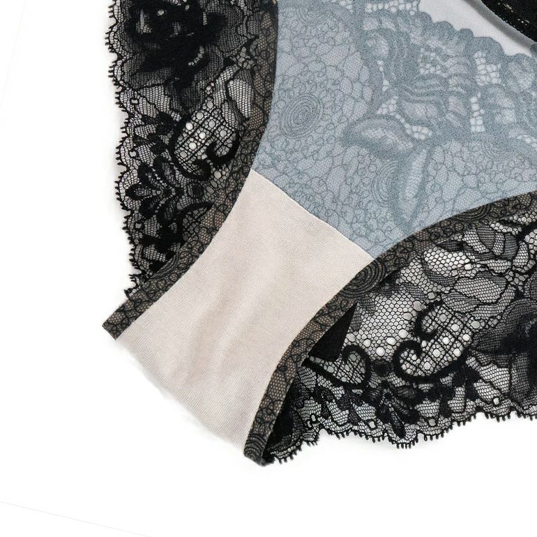 身生地は肌に溶け込むようなソフトで伸びの良い2wayハイゲージナイロンベア天竺*を使用しています。また、前足口はフラットな接着仕様なのでごろつき感が少なく、優しい肌触りです。さらに、バックはヒップを美しく見せ、響きにくいストレッチリバーレース*の総レース仕様です。