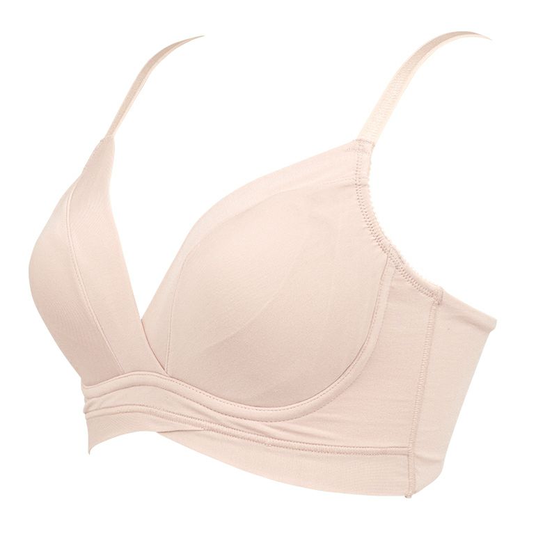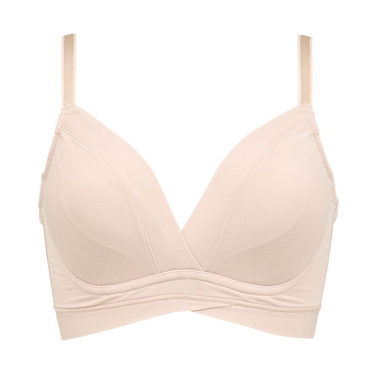 伸縮性があり肌当たりの良いナイロン綿ベア天竺*を使用した、綿素材ならではの快適さを感じられる補整ノンワイヤーブラです。カップ上辺をわさ仕様*にすることでバストにフィットしやすく、アウターにも響きにくいシンプルなデザインです。