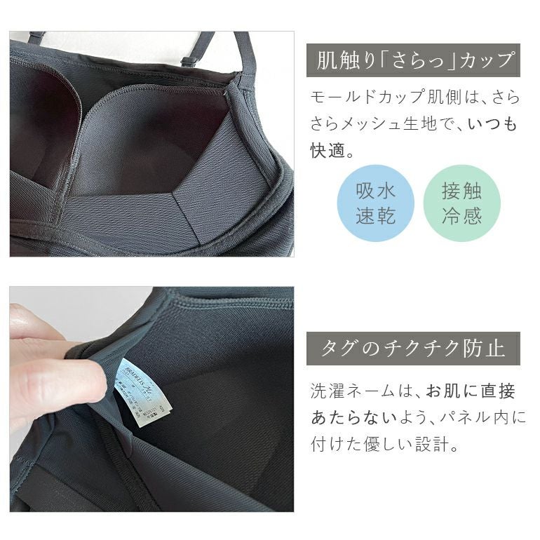 伸縮性の良いパワーネット素材のパネルがバストの大きさに合わせてフィットし、脇肉をカバーします。