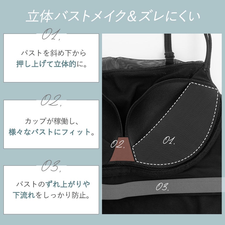 【見せても可愛い、涼やかな着心地のチュール補整ブラキャミ】