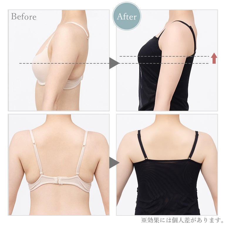 カップ前中心のパワーネットパネルによってカップが動き、様々なバストに馴染みやすくなっています。小胸はボリュームアップ、離れ気味のバストは自然に寄りやすくなります。