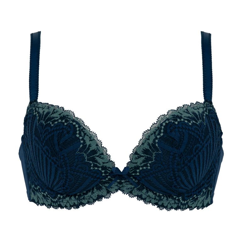 ステップ2の特徴は、幅の狭いワイヤーで、カップに深みを持たせているため、バストの高さをつくります。さらに、乳間が狭く、集めたバストを中心に寄せる機能を持っています。
