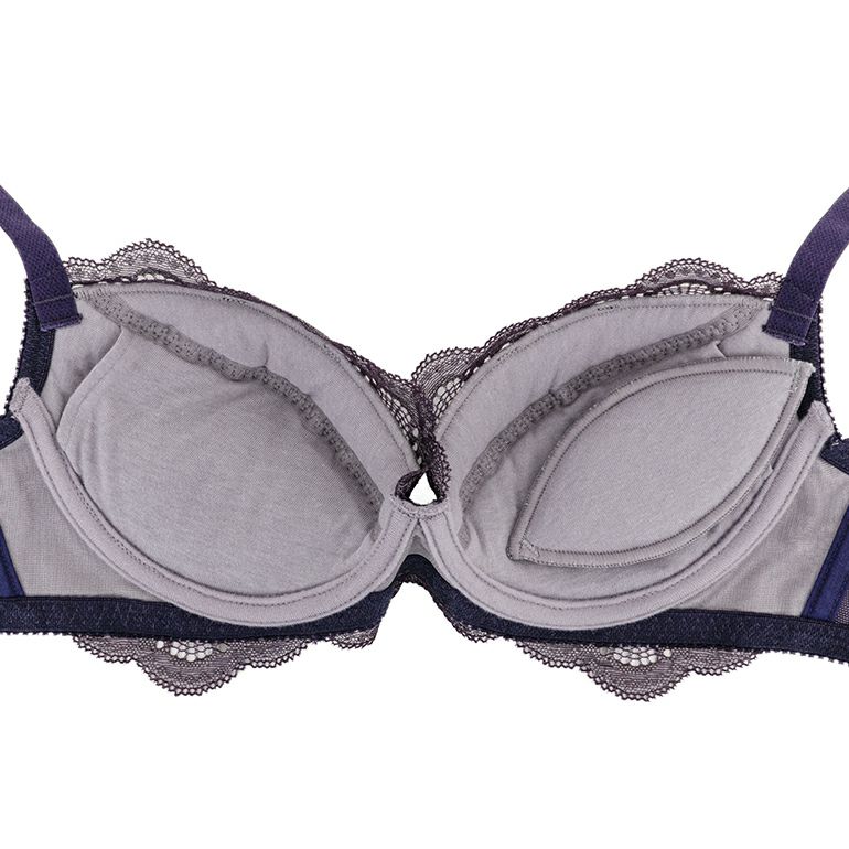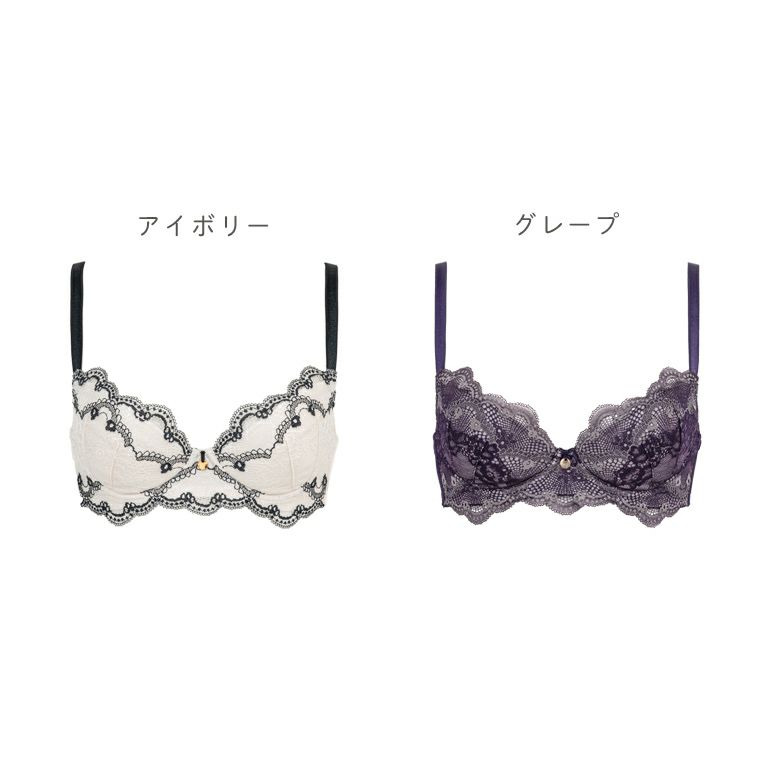 - カップの尖りを解消するレース縦2ダーツ仕様。カップが丸く立体的な仕上がりです。レース表下にトリコット*を重ねています。