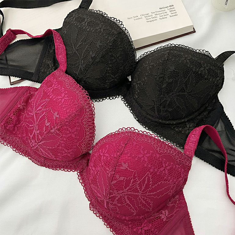 線画調のリーフ柄とスカラ部分の模様が特徴的なストレッチラッセルレース*使用の、ステップ2の補整ブラジャーです。