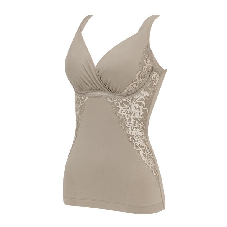 刺繍のような存在感のある二浴染め*光沢落下板ストレッチレースをふんだんに使用した、補整ノンワイヤーブラキャミです。