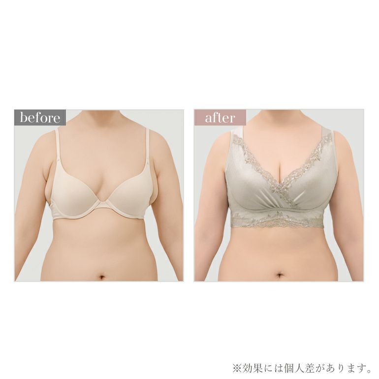 また、カップ周りの独自の補整機能により、バストの横広がりを防止し、ノンワイヤーでも立体的なバストシルエットをつくります。