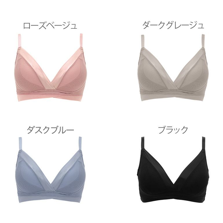 肌あたりのよいソフトパワーネットを使用し、カップ上辺をワサ仕様の2wayトリコットで切り替えたスタイリッシュなデザインの補整ノンワイヤーのブラジャーです。