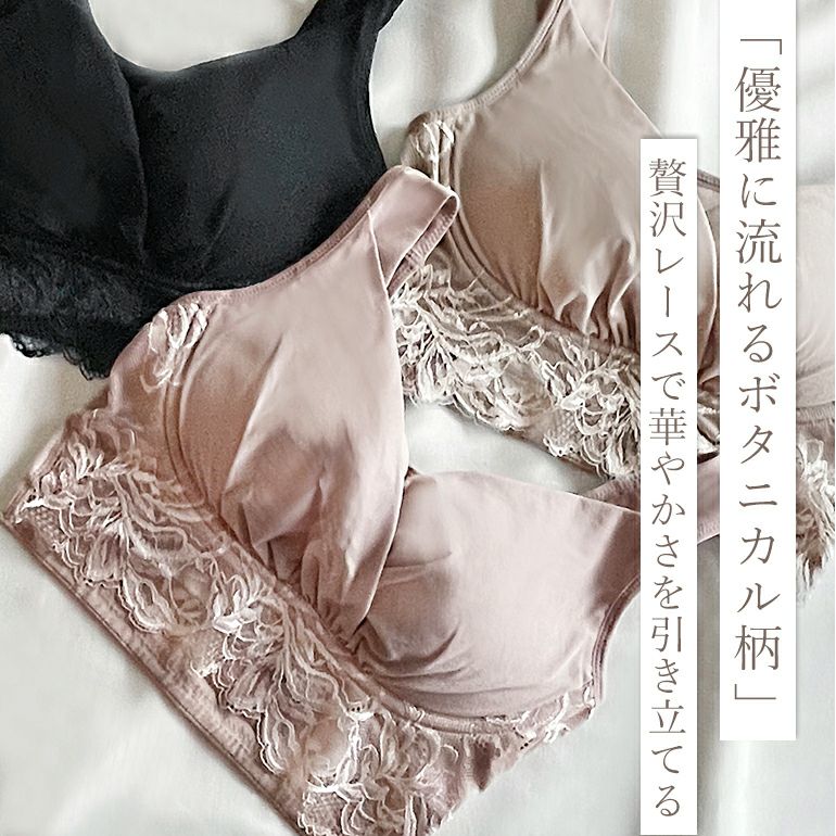 優雅に流れるボタニカル柄がエレガントでラグジュアリーな、二浴染め*落下板ストレッチレースを使用した、補整ノンワイヤーブラです。