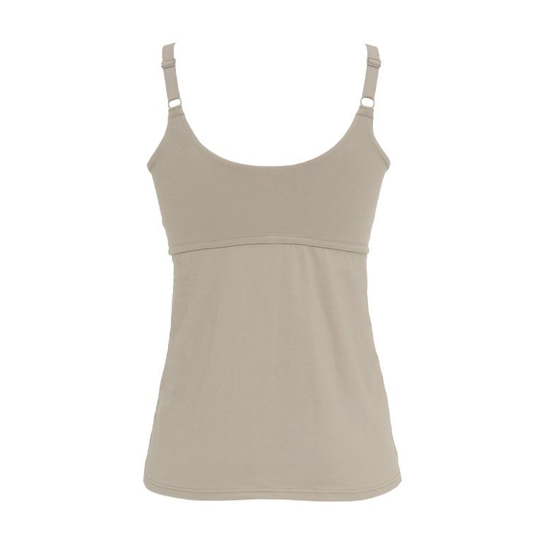 前開きのホック付きブラキャミタイプで、授乳時もラクにさっと開けられるフロントオープン仕様です。さらにカシュクールタイプなので、ずらしての授乳も可能。産後まで長く快適にお使いいただけます。