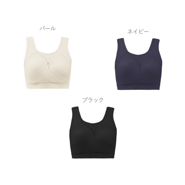 従来よりもサイズの幅が広がり、バストに合わせた最適なサイズ選びがしやすくなりました。ヨガやストレッチなど軽い運動やリラックス時にもおすすめです。
