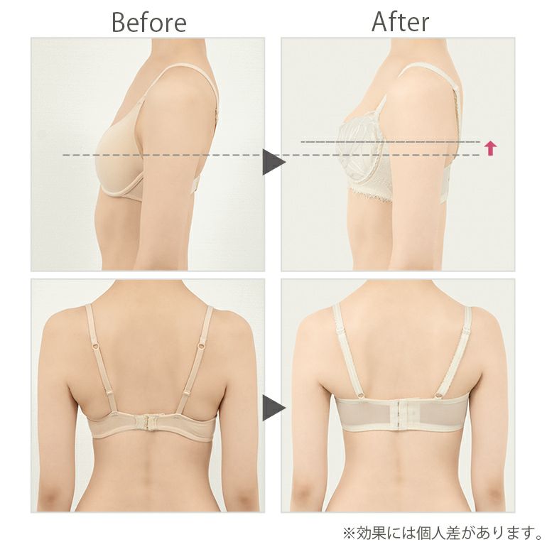 乳間が狭くプッシュアップ機能が高く、バストをかき集めます。またカップのかぶりも大きめです。