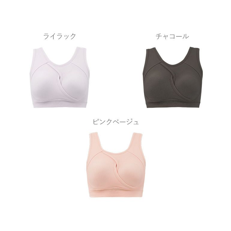 従来よりもサイズの幅が広がり、バストに合わせた最適なサイズ選びがしやすくなりました。ヨガやストレッチなど軽い運動やリラックス時にもおすすめです。