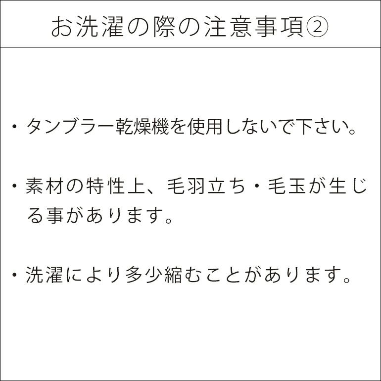 - ・この製品は素材の特性上、毛玉ができやすい為、取扱いにご注意ください。