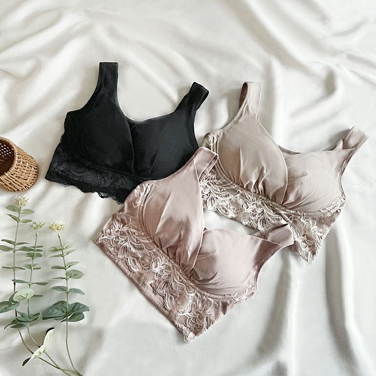 また、ストレッチレースはカップ台の内側に縫い付けていないため、体の動きに合わせて伸縮し、巻き上がりを軽減します。