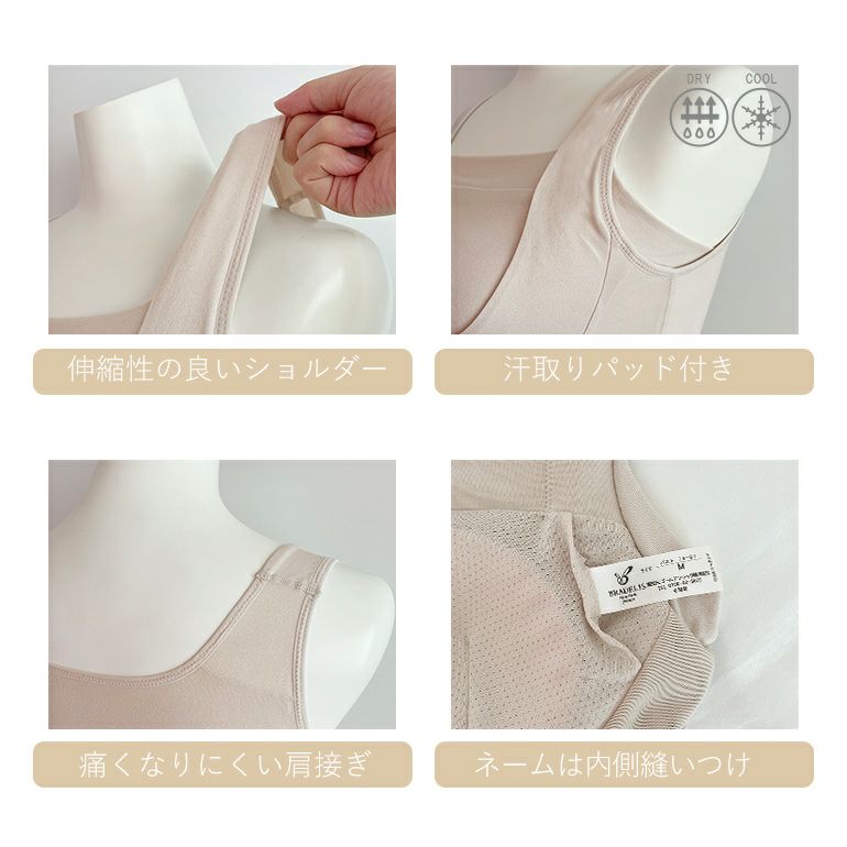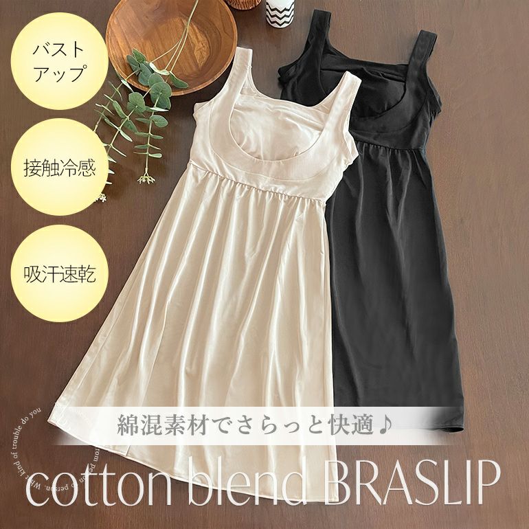 【接触冷感・吸汗速乾・消臭機能付き!さらっとした肌触りの綿混素材で快適な着心地のブラスリップ】