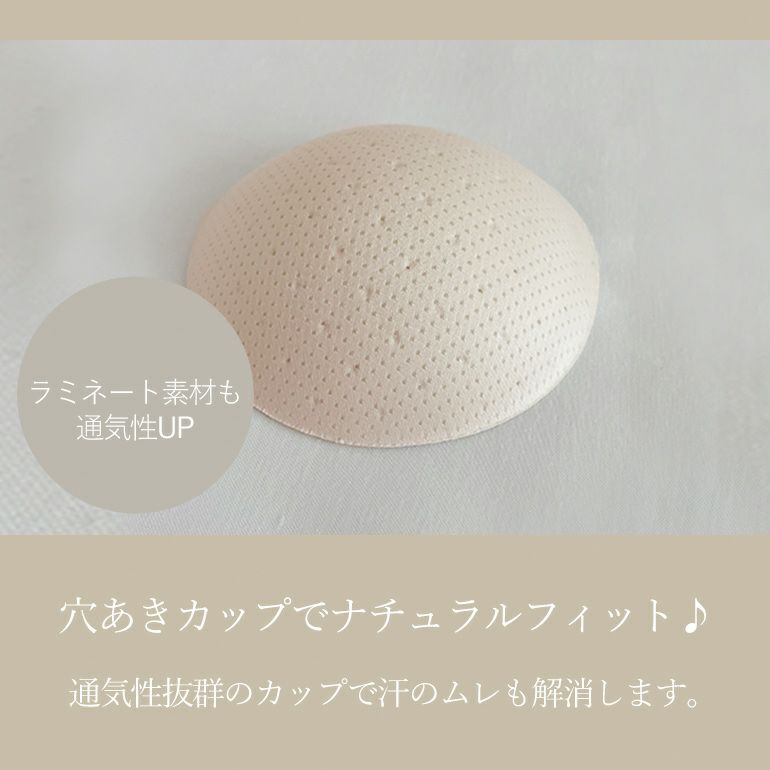 カップの裏側と肌側には通気性のよいメッシュ素材を使用。吸汗性と速乾性があるので、サッと汗を吸ってムレにくく汗ばむ季節も快適にお過ごしいただけます。