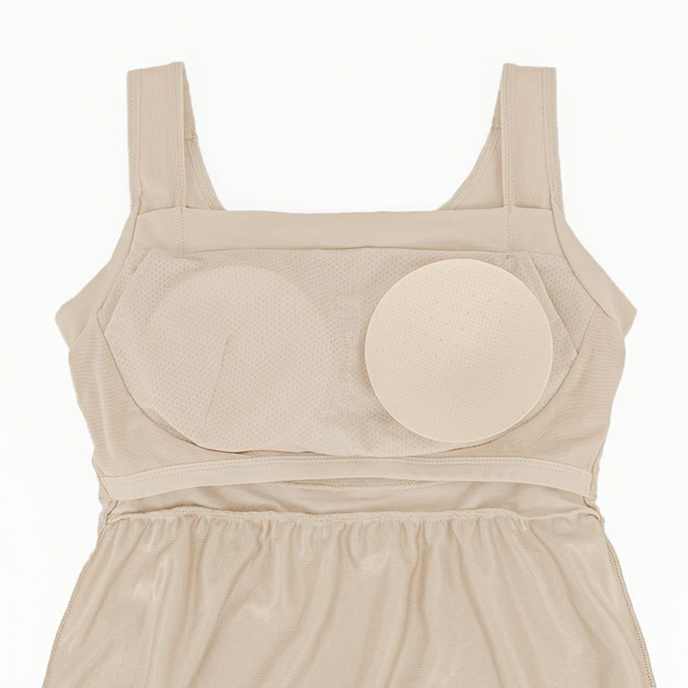 さらに、消臭機能(汗臭)付きの綿ベア天竺素材を使用した「はみ肉ストッパー&汗取りパッド」は、脇のはみ肉を軽く押さえる効果と、汗取りパッドとしての吸汗性に優れ、快適な着心地です。