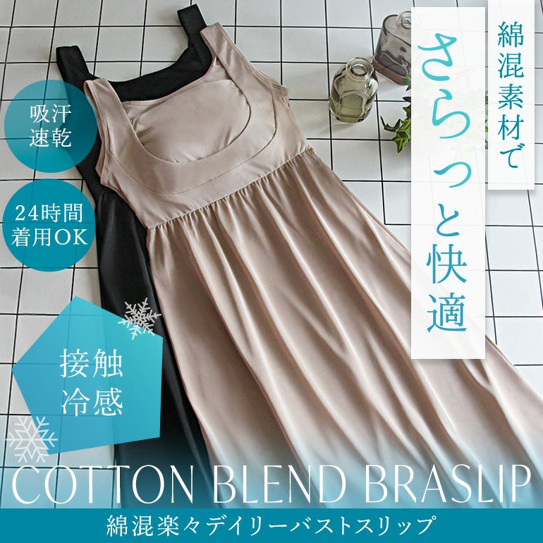 接触冷感機能を搭載し、汗をかいてもサラッと快適な、洗練されたデザインの補整ノンワイヤーブラスリップです。
