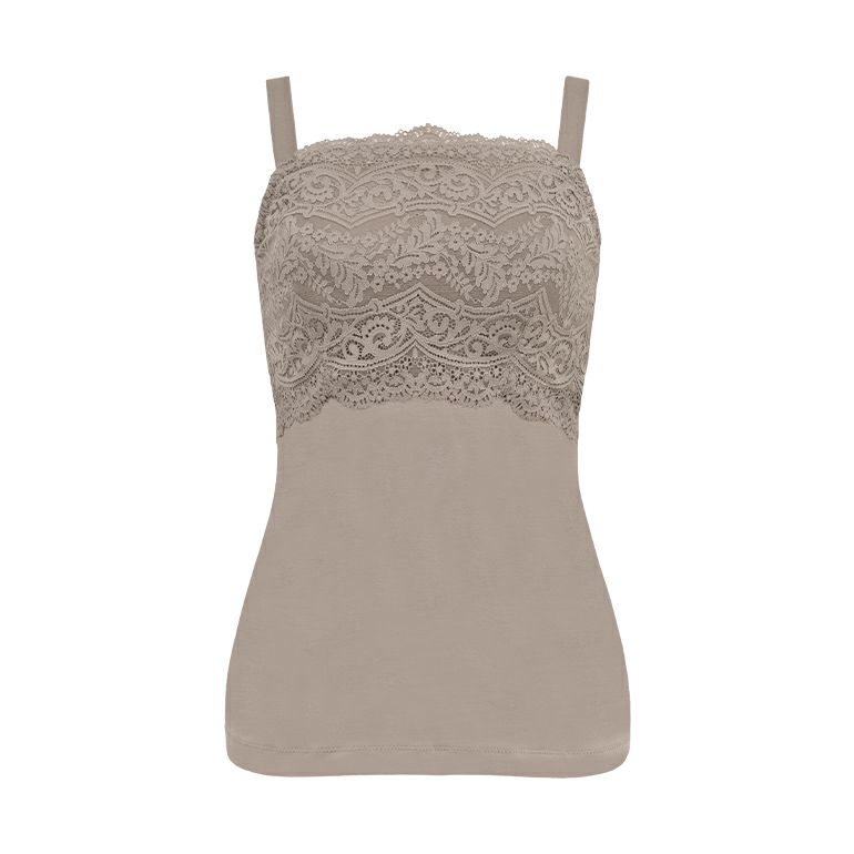 オリジナルで開発したふわふわのマドレーヌのような立体カップを使用し、締めつけ感が少なく楽な着用感の補整ブラキャミです。