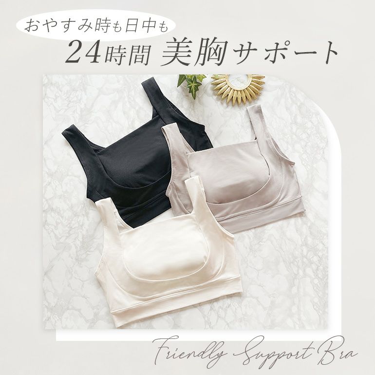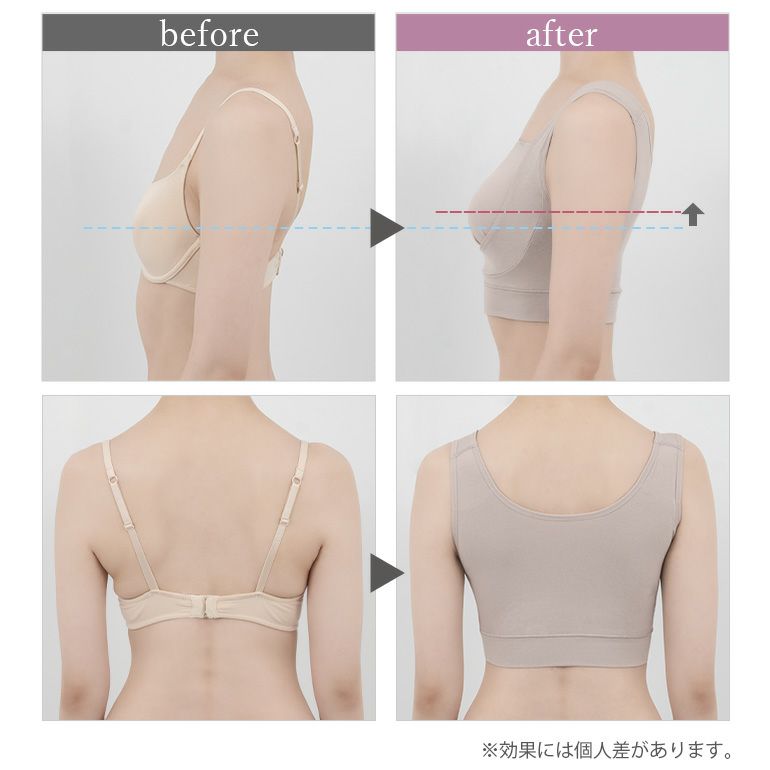 デイリー使いや就寝時のナイトブラはもちろん、ヨガやエクササイズなど軽いスポーツインナーとしても24時間着用でき、マルチにお使いただける補整ノンワイヤーブラレットです。