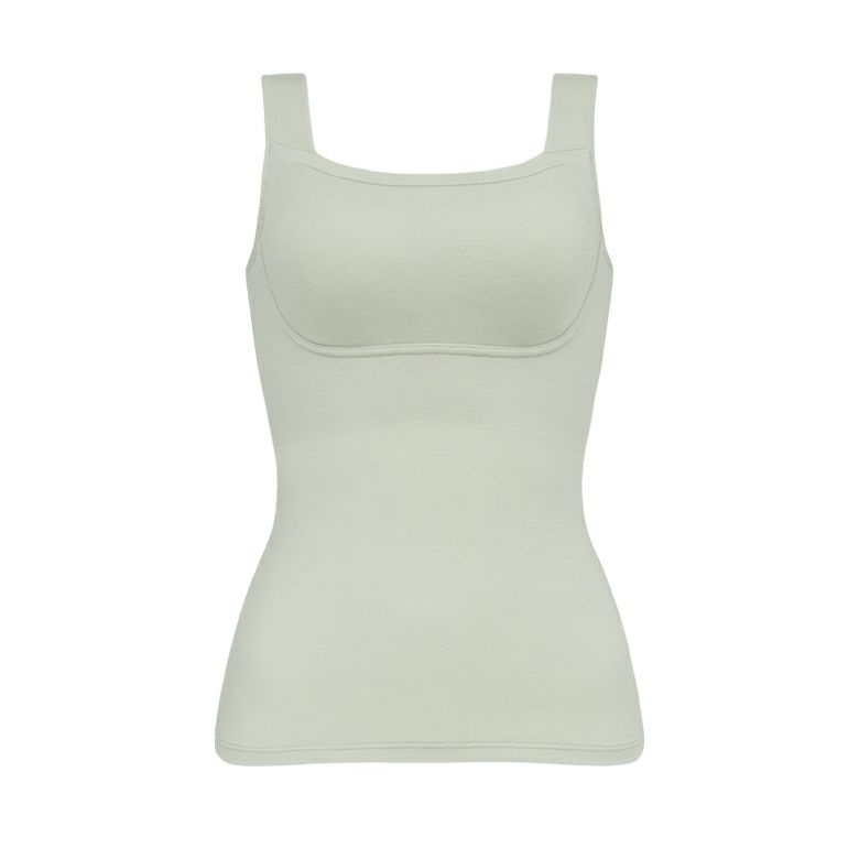 - 幅広のタンクトップ型ショルダーは、前側にパワーネットを挟み込むことでバストの引き上げをサポートします。背中側のショルダー部分は、パワーネットを内蔵せず生地の伸度をキープしているため、食い込みにくく優しい肌触りです。