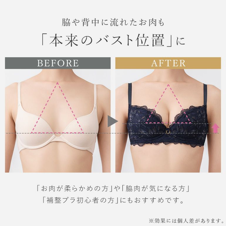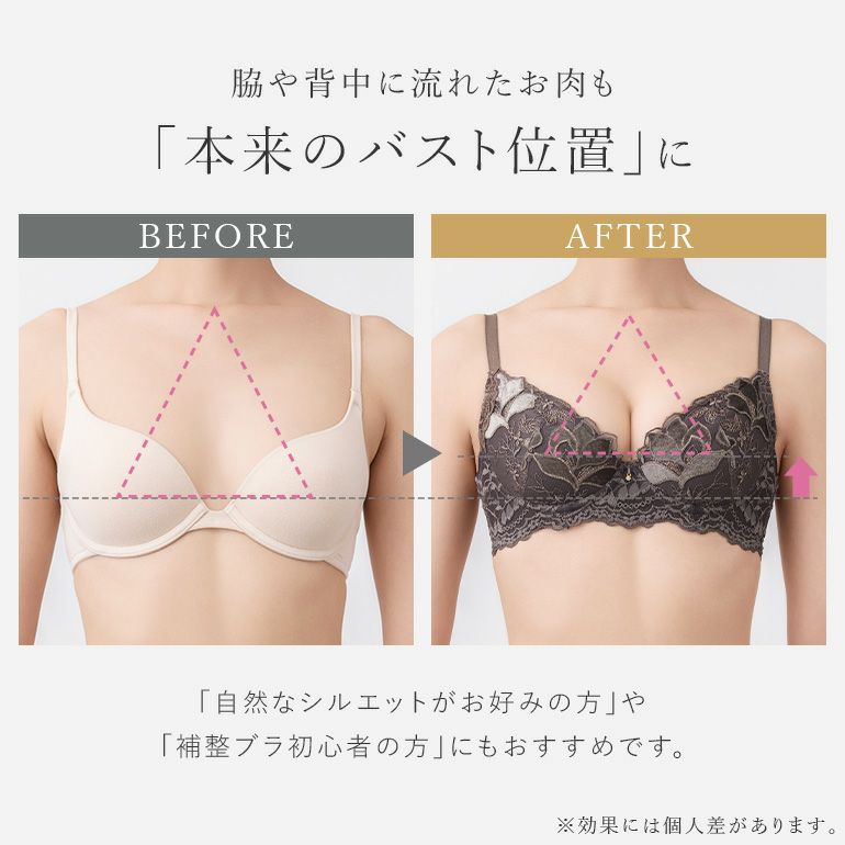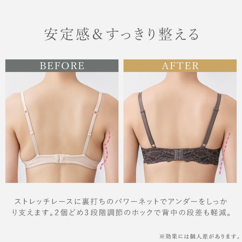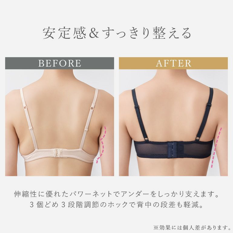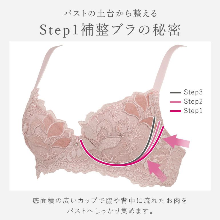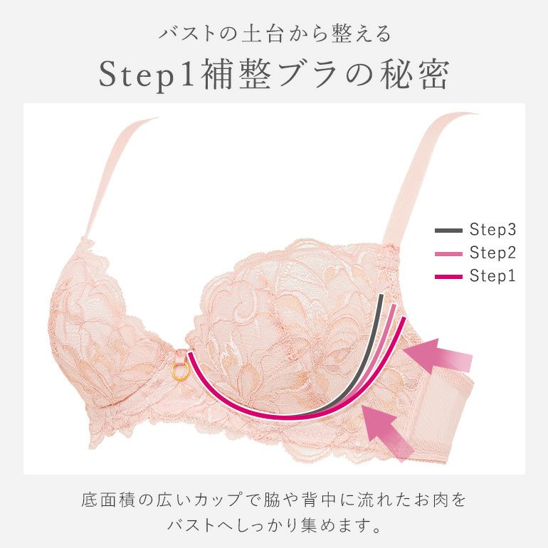 Step3ブラ| タイプ | 特徴 | シルエット | 初心者度 | おすすめバスト | 脇肉スッキリ | カップの深さ | 軽めの着け心地 | |