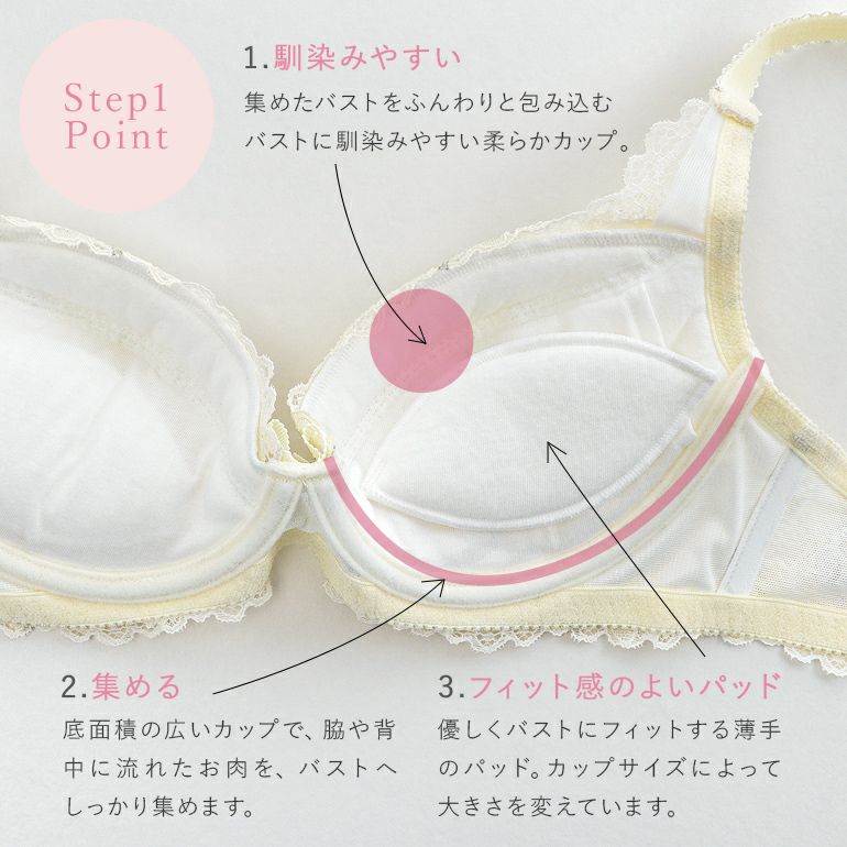 他の画像を見る ブラデリス ジャスミンステップ1ブラ24S1 ¥ 9,900 ¥ 6,930 税込 SALE ステップ補整 ステップ1 集める ジャスミンタイプ 3個どめホック カートに入れる お気に入りに登録する