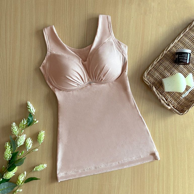 伸縮性に優れ、吸汗性・速乾性を備えた綿混素材「ナイロン綿ベア天竺*」を使用した、ゆきねえシリーズの補整ノンワイヤーブラキャミです。心地良くボディにフィットして365日快適な着心地です。