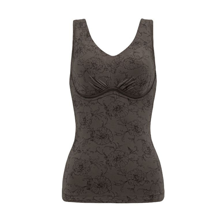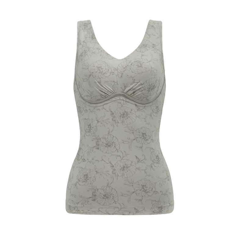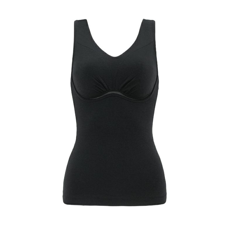 モールドカップは、ボディに縫い付けた一体型で安定感があり、バストをしっかりホールドします。またカップは伸縮性があり、下部分に少し厚みを持たせたプッシュアップ設計のため、バストの重みを支えて下垂を防止し、幅広いバストサイズにフィットします。