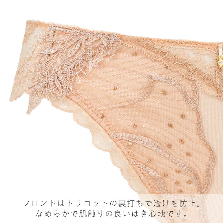 フロントの裏打ちは、透け防止の為ブラと同色のトリコット*を使用。肌触りが良く、快適な着用感です。