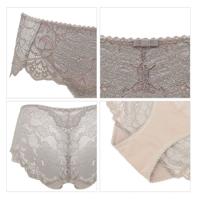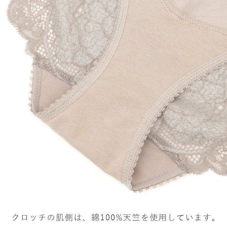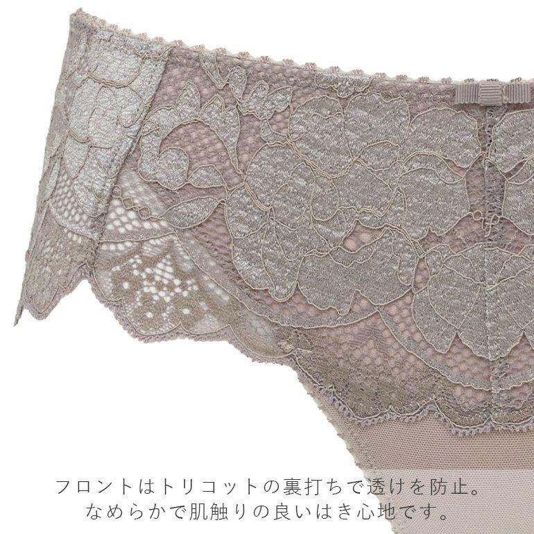 華やかに浮かび上がる大きな花柄を、コード糸で丁寧に縁取ったストレッチラッセルレース*を採用した、パンティです。