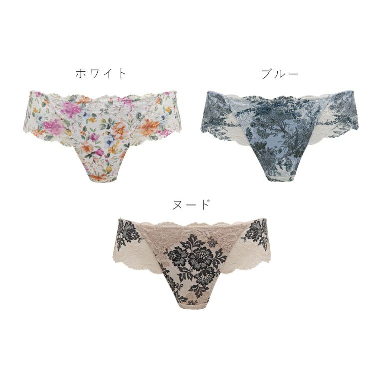 ストレッチラッセルレース*に繊細かつ立体的なプリント加工を施した、総レース仕様のパンティです。