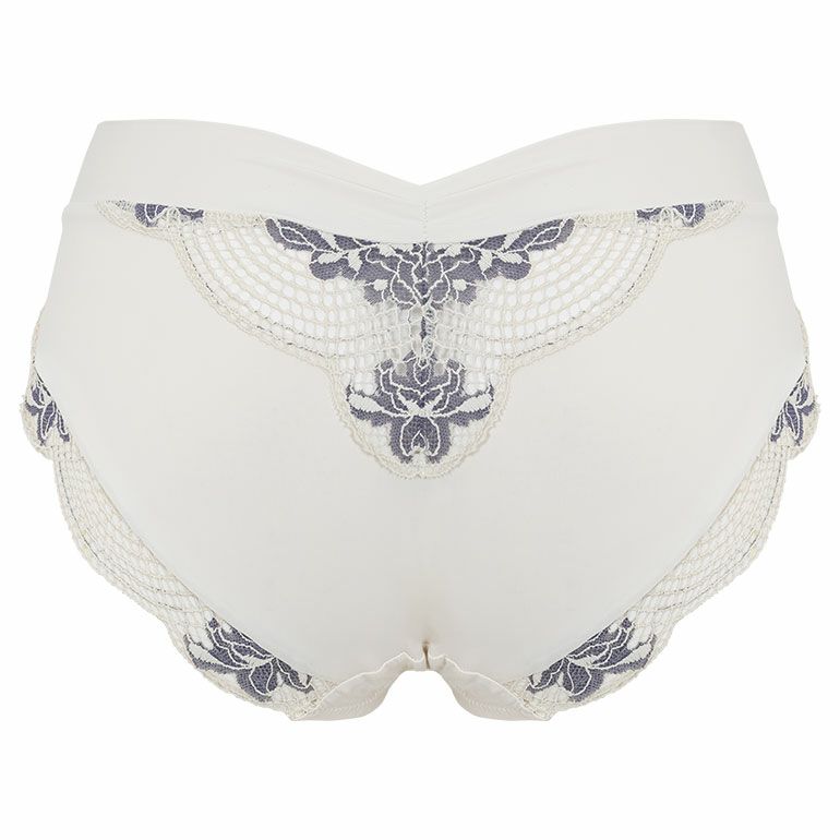 エレガントでありながら個性的なストレッチラッセルレース*を使用した、パンティです。重なり合う配色と模様が立体感を生み出し、どの角度から見ても美しい表情を楽しめます。