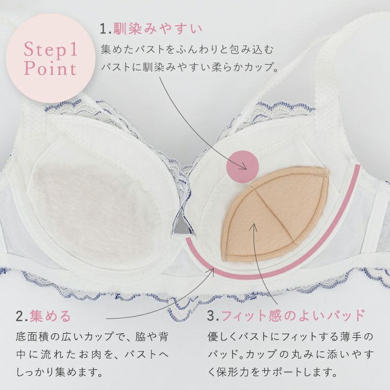 他の画像を見る ブラデリス ジャスミンステップ1ブラ24A1 ¥ 9,900 ¥ 6,930 税込 メディア掲載 SALE ステップ補整 ステップ1 集める ジャスミンタイプ 3個どめホック カートに入れる お気に入りに登録する
