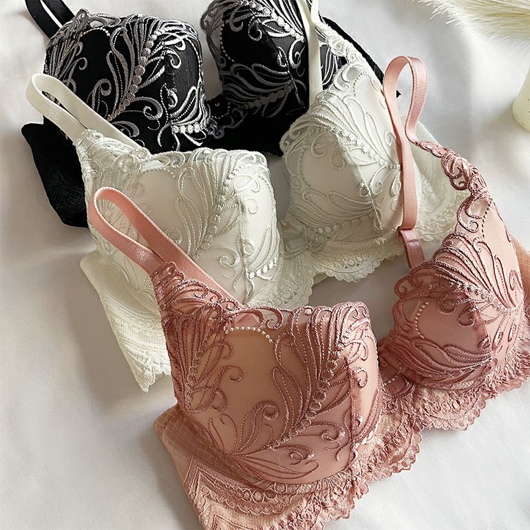 「自分の力や運気を引き上げる」と言われるフェザー柄のエンブロイダリーレース*を使用した、ステップ3の補整ブラジャーです。