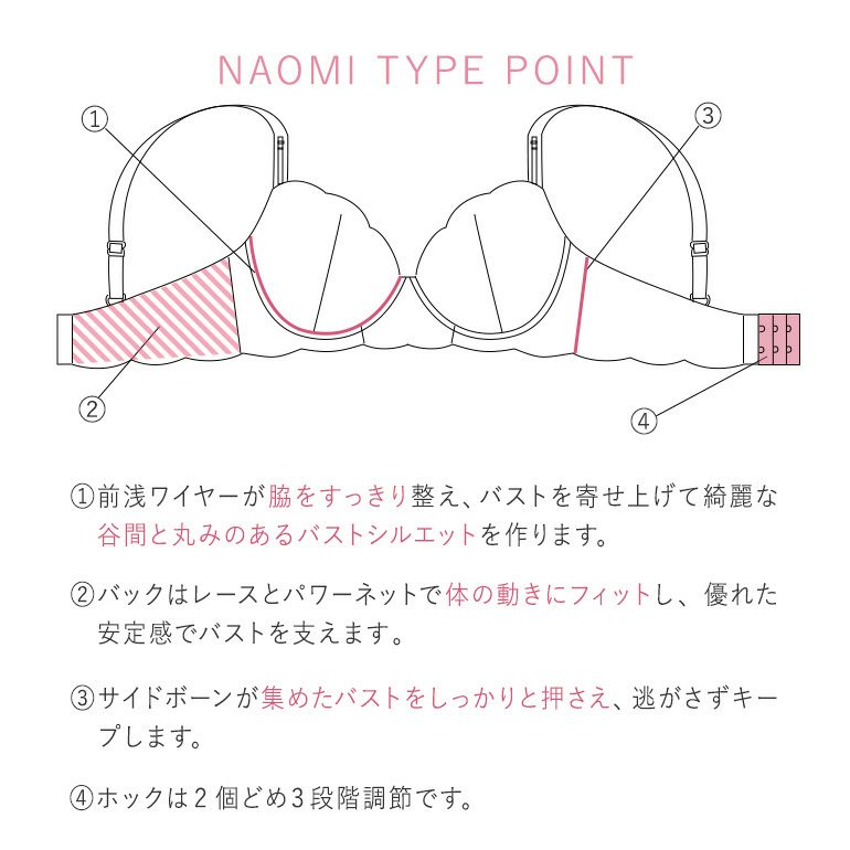 谷間をしっかり作りたい方、サイドをすっきりさせてコンパクトに見せたい方にもおすすめです。