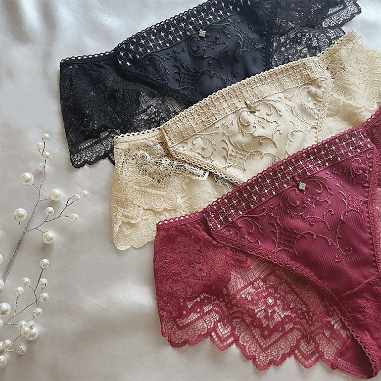 スイスのInter-Spitzen社製のエンブロイダリーレース*を贅沢に使用した、パンティです。