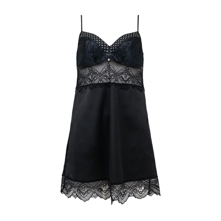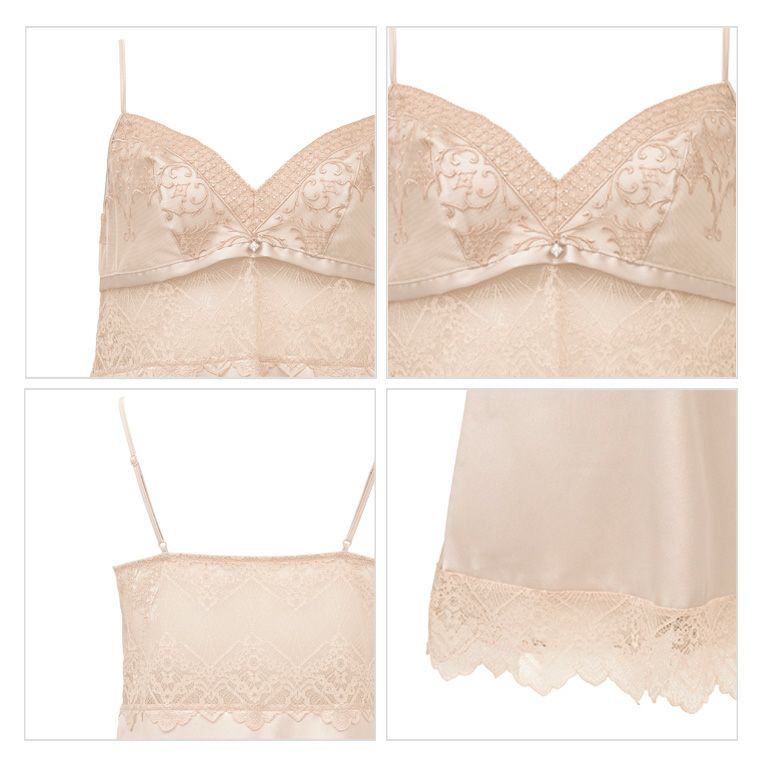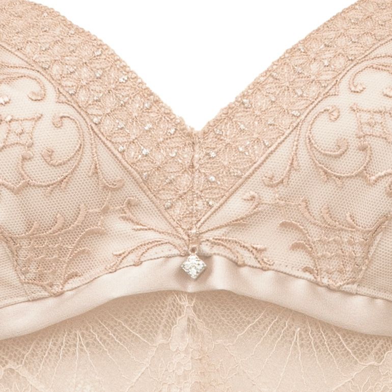 バスト下やバック上辺、裾回りにはストレッチラッセルレース*を贅沢に使用。程よい透け感で素肌を美しく見せます。
