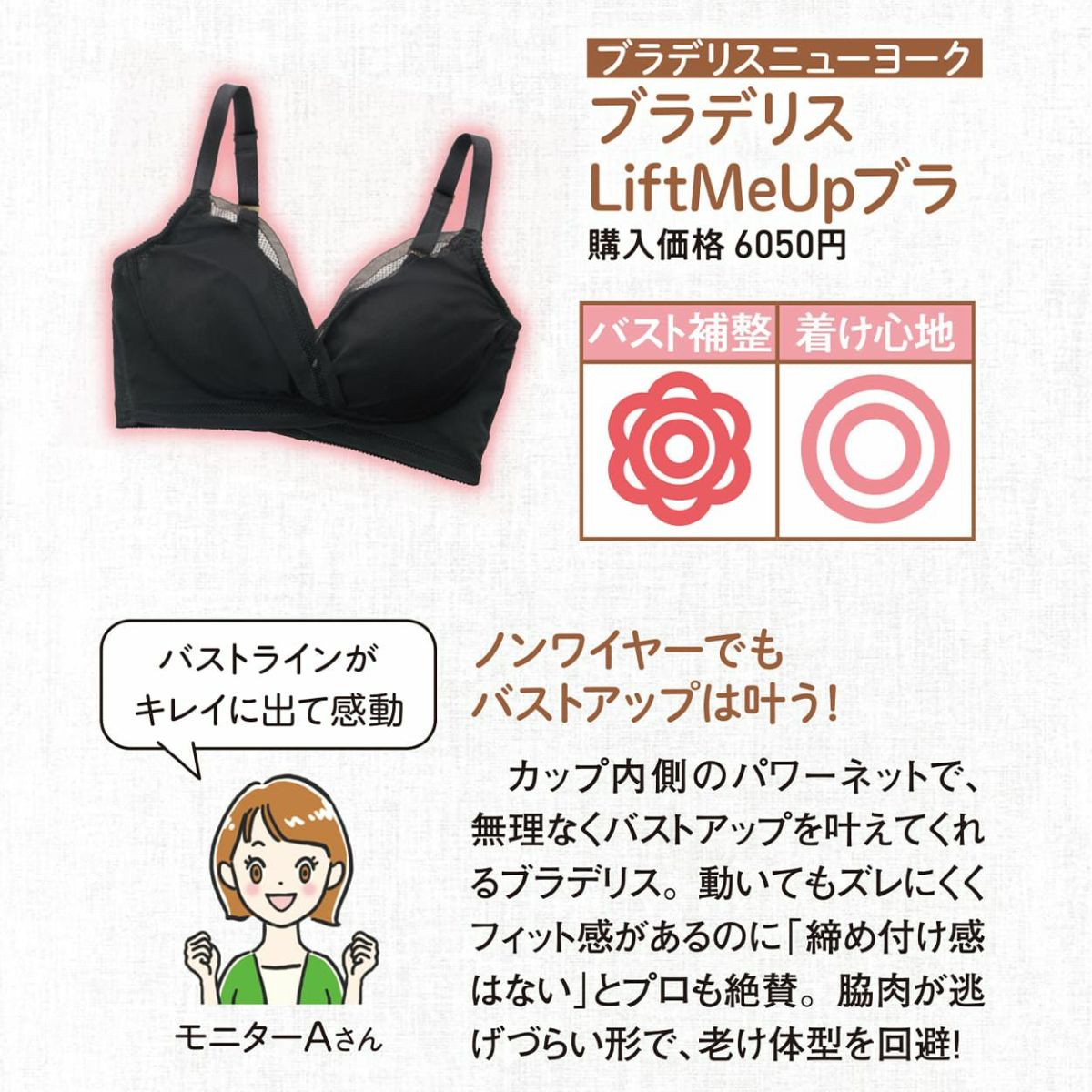 他の画像を見る ブラデリス LiftMeUpブラ ¥ 6,050 税込 ポイント5倍メディア掲載 補整ノンワイヤー ステップ0 キープ 定番 ホックあり ミディアムタイプ 寄せ上げメイク カートに入れる お気に入りに登録する
