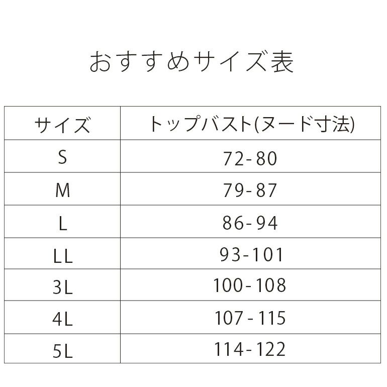 - S(72-80)・M(79-87)・L(86-94)・LL(93-101)・3L(100-108)・4L(107-115)・5L(114-122)