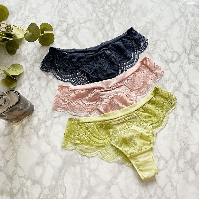 - ヒップを美しく見せ、アウターに響きにくい総レース仕様です。