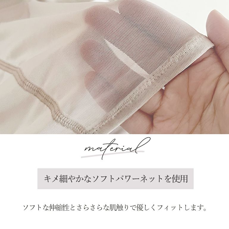 - レースとパワーネットの二重構造で気になるお腹のお肉を押さえます。