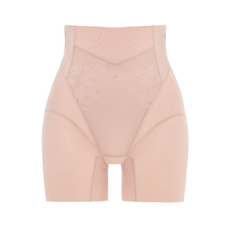 レースメーカーと共同開発した薔薇モチーフの高級レースを使用した、二分丈の深ばき補整ショーツです。長めのレッグ丈で下垂しがちなヒップを下からまとめてすくい上げて包み込みます。オリジナル設計の立体パターンでサポート力があるのに楽なはき心地です。