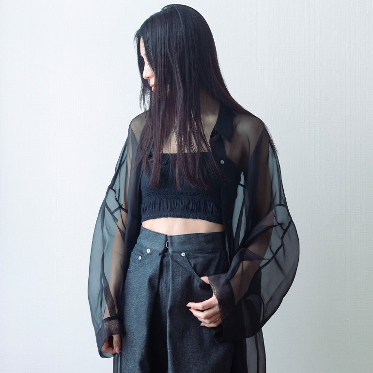 オフショルダーや開きの大きいアウターとのコーディネートにも対応できる、シーンを選ばない万能デザインです。