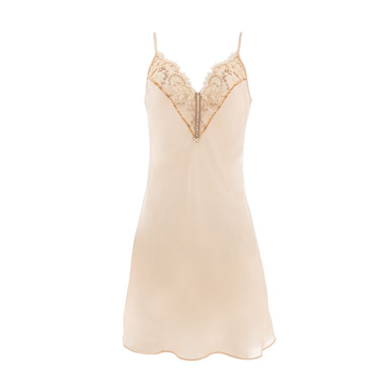 オリエンタルな雰囲気に仕上げたインケミカルエンブロイダリーレースを使用したスリップです。