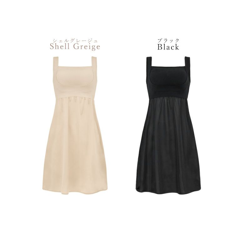 胸元は谷間見えを防ぐスクエア型で、アウターから見せる着こなしも楽しめます。