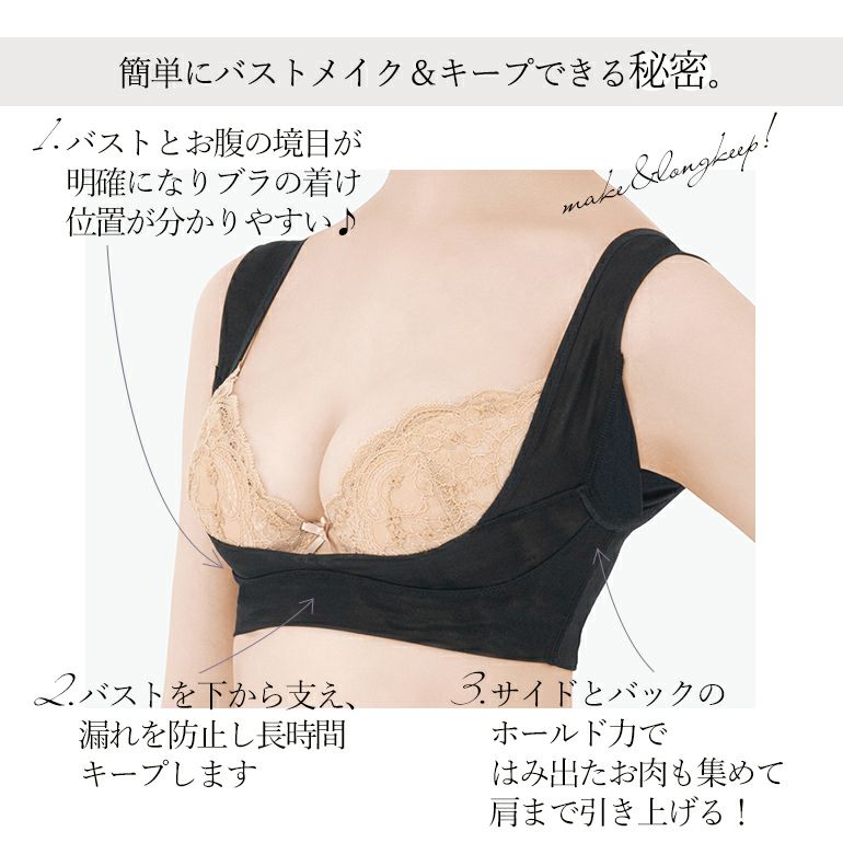 ブラとセットで着用することで、脇や背中のお肉をしっかり押さえ、バストをリフトアップできる補整アイテムです。