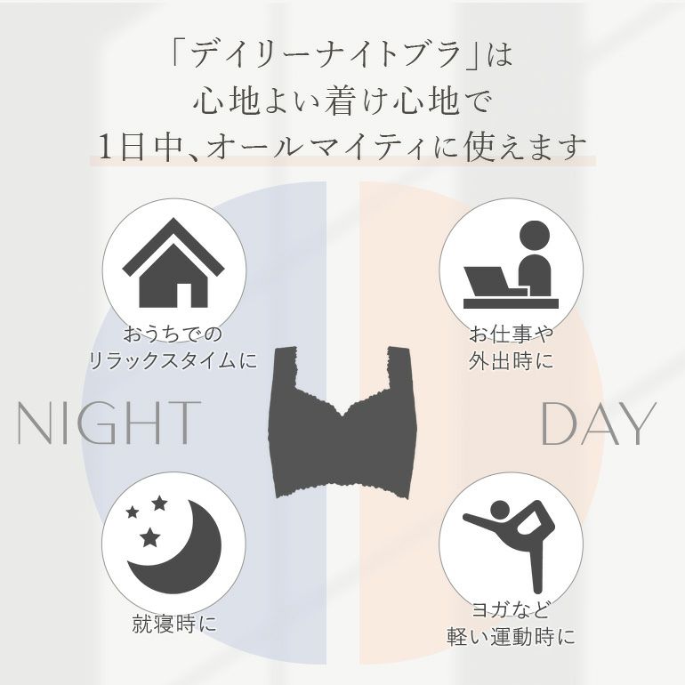他の画像を見る 【オンラインストア限定】ブラデリス デイリーナイトブラ ¥ 6,930 税込 WEB限定補整ノンワイヤーステップ0 キープナイトブラ背中すっきりホックなし カートに入れる お気に入りに登録する