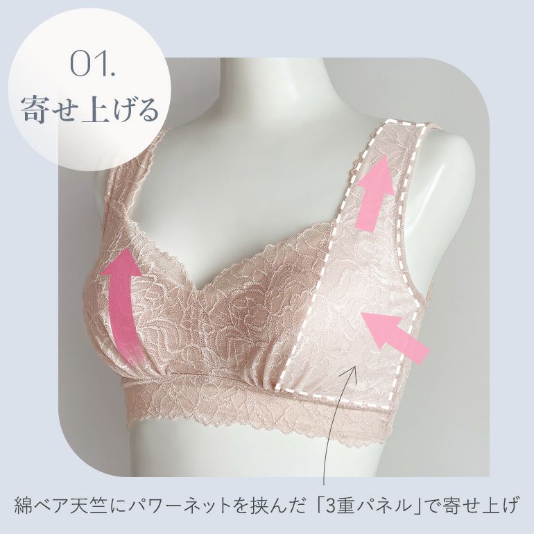 他の画像を見る BRADELISHUGME Bralette ¥ 5,170 税込 メディア掲載 ベストセラー補整ノンワイヤーステップ0 キープホックありミディアムタイプ寄せ上げメイク カートに入れる お気に入りに登録する